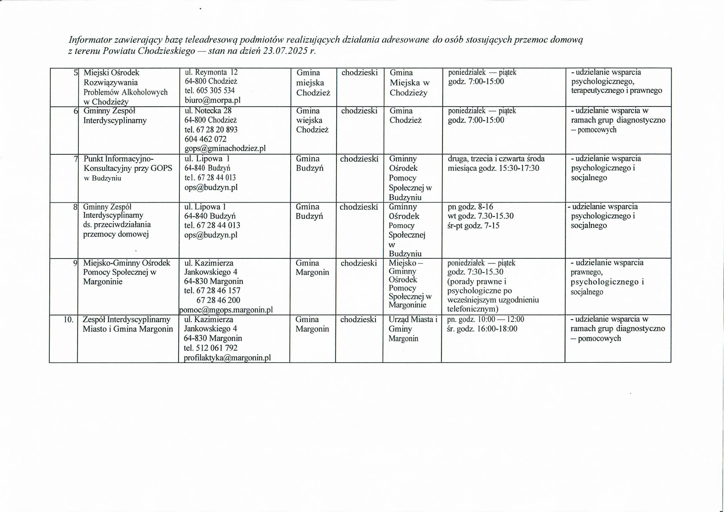 - Zespół Interdyscyplinarny w Margoninie ul. Powstańców Wielkopolskich 13A, 64-830 Margonin tel. 512 061 792